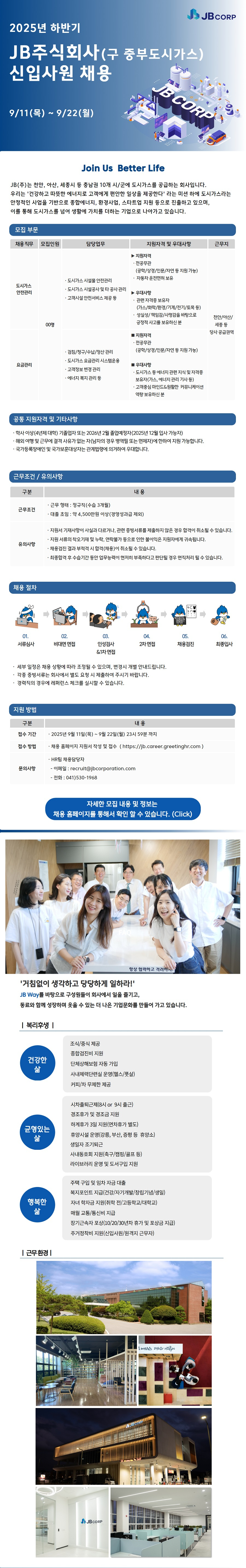 JB(주)* 추천채용을 아래와 같이 알려드리니, 소속 학생이 지원할 수 있도록 학과 홈페이지 등을 통해 적극적으로 안내하여 주시기 바랍니다.